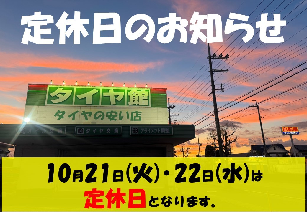 10月21日、22日は定休日ですが、WEBからでもタイヤ購入、作業予約できます。