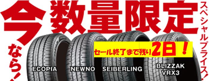 終了間際!期間限定!!『タイヤスペシャルプライスデー』開催!!