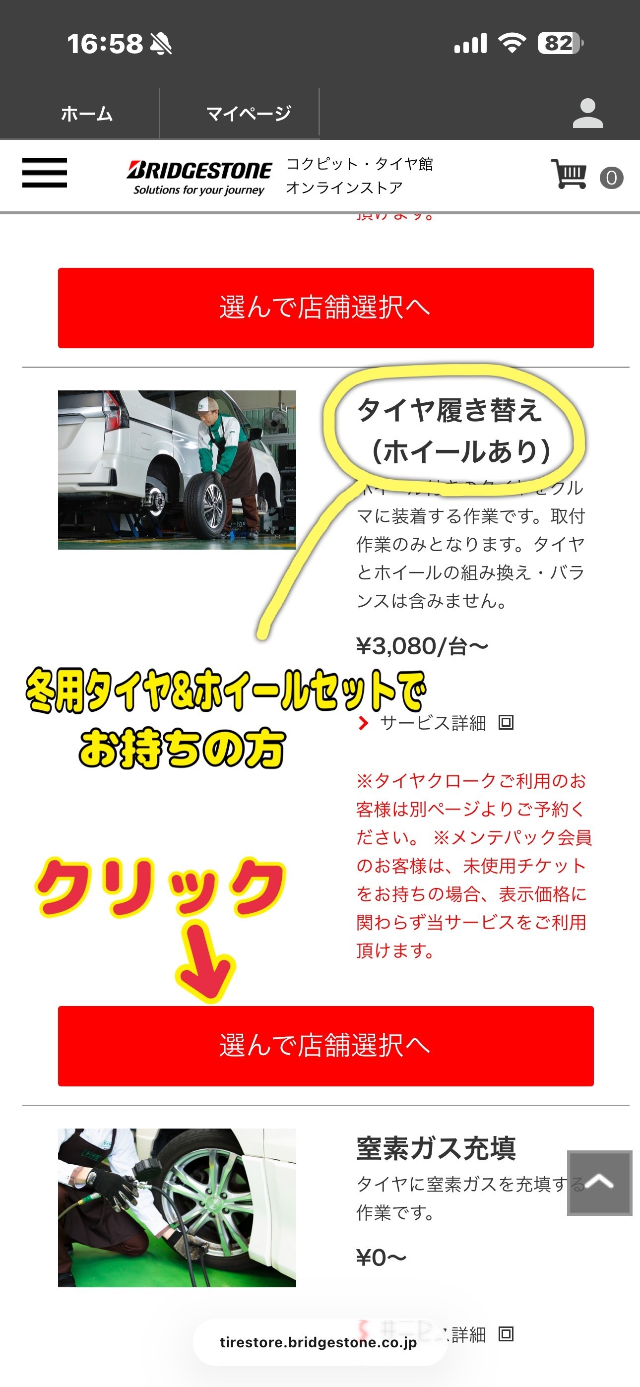 ①【タイヤ履き替え(ホイールあり)】を選ぶ