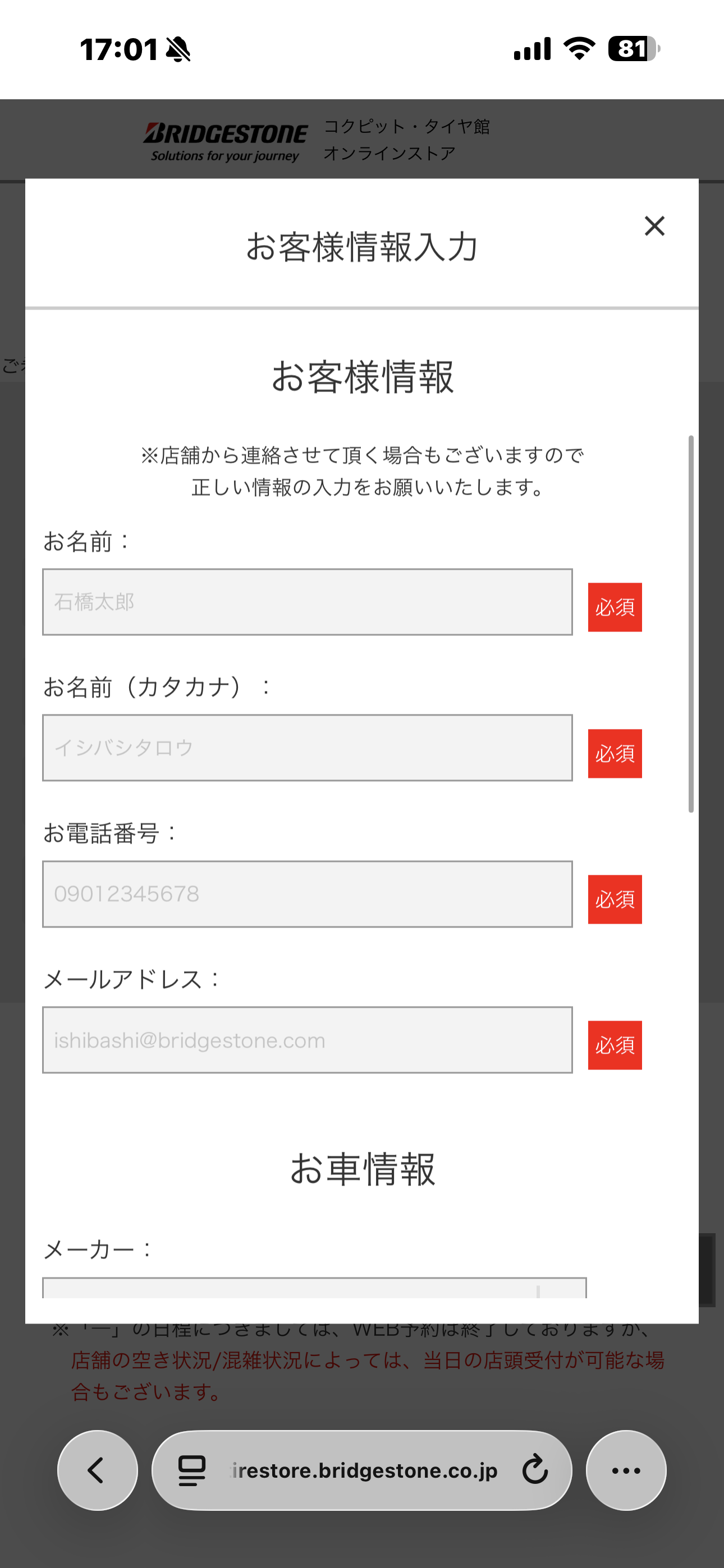予約時間丁度に作業が開始できない場合もあるかと思いますがご了承ください。