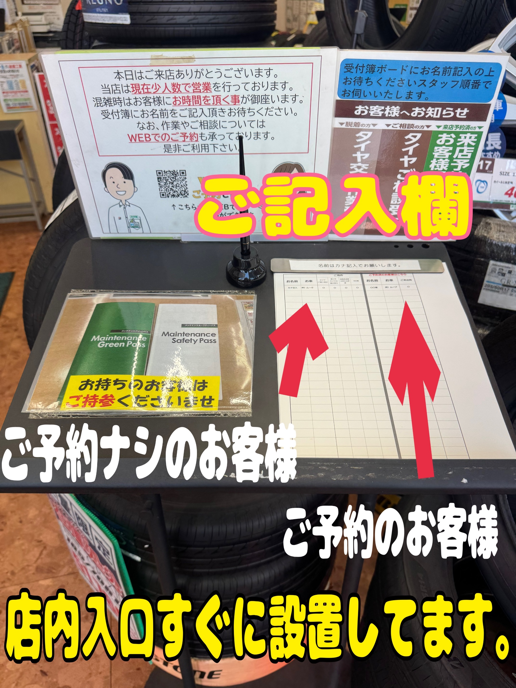 ご来店いただきましたら、受付ボードにお名前をご記入時に