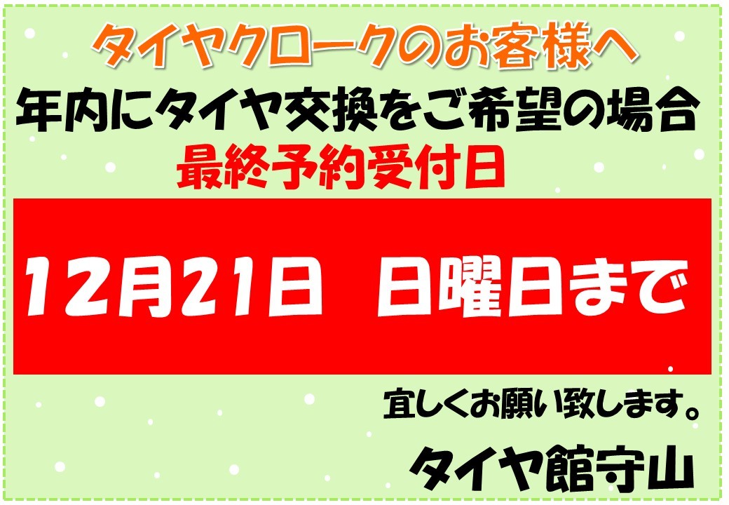 タイヤの履き替え予約がお済みでないタイヤクロークのお客様へ 最終のご案内です!!!