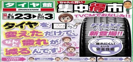 集中得市!! ポスト 2016年4月22日 こんにちは4/23(土)~5/3(火祝)集中得市を開催します。ゴールデンウイークお出かけ前の安全点検しましょう、是非この機会にご来店下さい。5/3(火)は営業いたします5/5(木祝)、6(金)はお休みとさせていただきます。