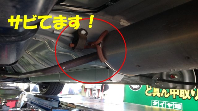 よく見ると、丸印のマフラーを吊るす部品がサビてしまっています。