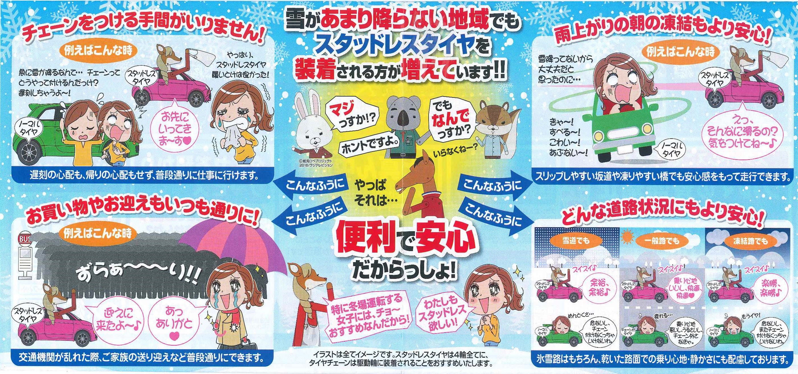 冬にスタッドレスタイヤを装着される方が良いですよ!