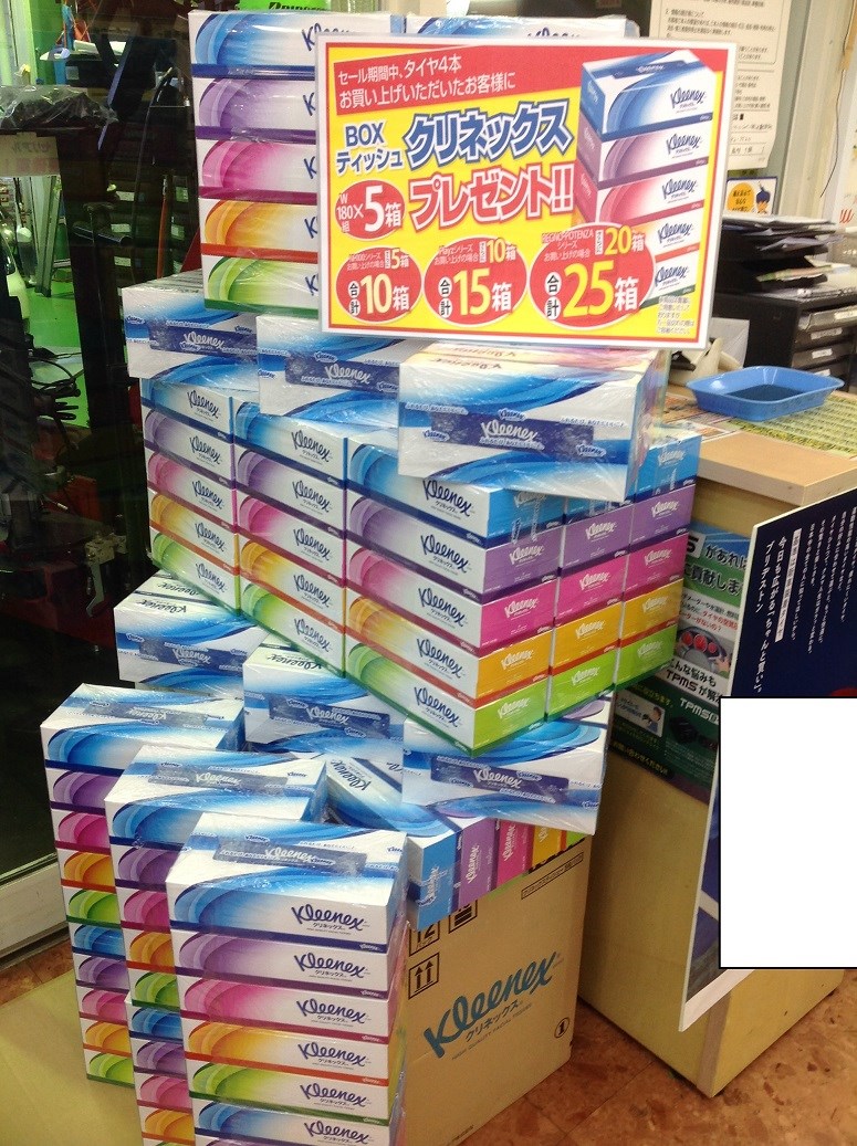 なんと最大BOXテッシュ25箱プレゼント致します。