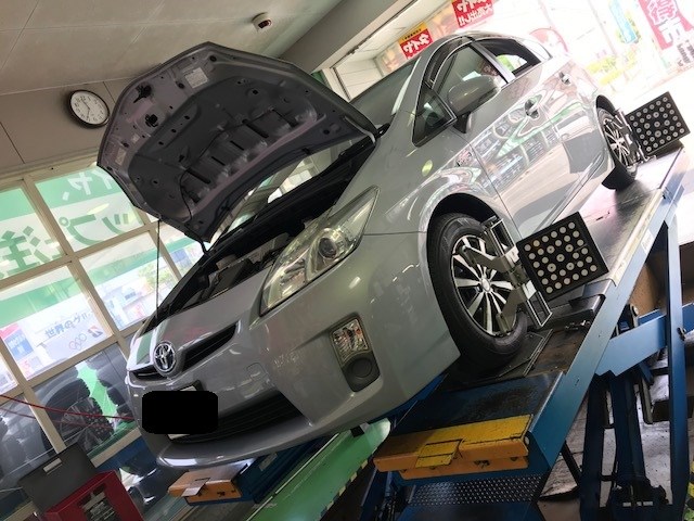 本日は、プリウスのタイヤ交換アライメントを実施しました。