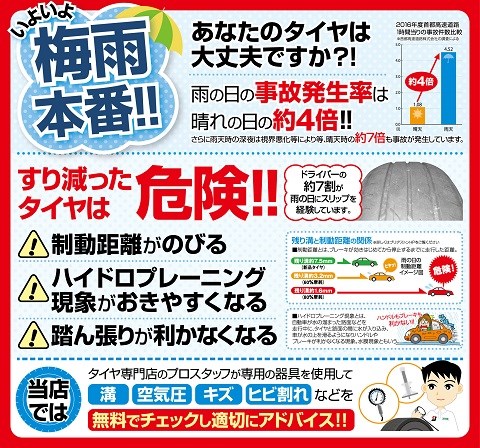 豪雨ですね・・・ ポスト 2018年7月6日 こんにちは、タイヤ館守山ニシカワです。 本日は早朝から電車が止まっていたので通勤に時間が掛かって大変でした。 皆様は無事通勤出来たでしょうか??? また7/7、7/8で2日で2ヶ月分の降水量が予想されています。 タイヤ館は豪雨に負けずに元気に営業中です(^-^)v ご来店お待ちしています。 担当:西河