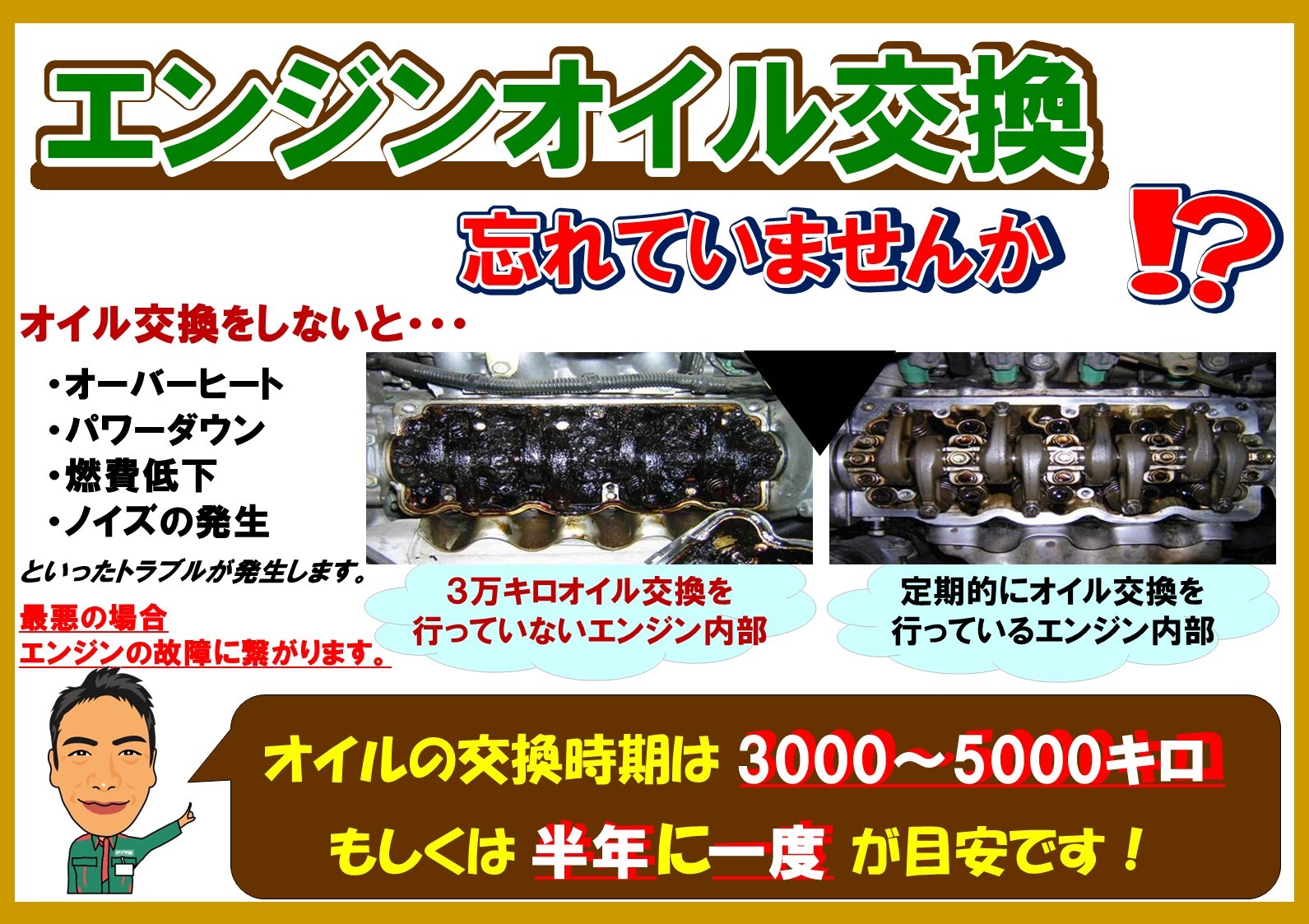 交換時期の目安は3000~5000キロまたは半年に一度が目安です。