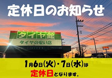 いつもタイヤ館守山のWEBをご覧いただきありがとうございます! 滋賀県にあります、タイヤ館守山店 定休日のご案内です! ※2024年1月から変則で水曜日も定休日となりました。 宜しくお願い致します!