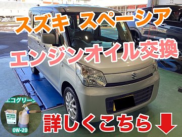 【スズキ スペーシア】エンジンオイル交換!!エコグリーン!
