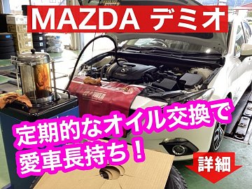 MAZDA デミオ エンジンオイル交換作業のご紹介です。 今回のデミオは、オイルゲージ部からホースを入れて古いオイル抜き取る【上抜き方式】で交換させていただきました。 オイル抜き取り中に安全点検も行います! オイルの抜き取りが終わったら新しいオイルを入れるだけ(^_^)b 使用したオイルは部分...