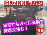 SUZUKI ラパン エンジンオイル交換作業のご紹介です。 今回のラパンは、オイルゲージ部からホースを入れて古いオイル抜き取る【上抜き方式】で交換させていただきました。 古いオイルを抜き取ったら、新しいオイルを入れます。 使用したオイルは当店のお買得オイルの【ECOGREEN 0W-20】です。 新し...