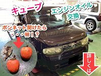 キューブ エンジンオイル交換 ボンネット開けたら・・・柿!?