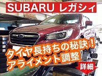 SUBARU レガシィ アライメント調整作業のご紹介です。 今回のレガシィはスタッドレスタイヤを新品に交換させていただいた際に、フロントタイヤの内ベリが見られましたのでアライメント調整を行わせていただきました。 さっそくですが測定結果をご覧ください↓ せっかくの新品タイヤが内ベリしてしま...
