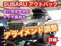 SUBARU アウトバック アライメント調整作業のご紹介です。 今回のアウトバックは新品タイヤへの交換とあわせて、タイヤの取り付け角度リセットのためにアライメント調整も行わせていただきました。 ちなみに交換させていただいたタイヤはこちらです↓ それではアライメント調整前の測定データです↓ ...