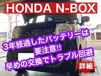 HONDA N-BOX バッテリー交換作業のご紹介です。 交換させて頂いたバッテリーはこちら↓ 付いていたバッテリーは2017年製造品で4〜5年使用されていたと思われます。 当店での統計ですと、バッテリーの交換時期は大体4〜6年で交換に至るケースが多いのですが、今回のエスティマも経年劣化によるバッテ...