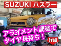 SUZUKI ハスラー アライメント調整作業のご紹介です。 今回のハスラーは夏タイヤを新品交換するにあたり、前輪が内ベリしていたのでアライメント調整も同時に行う事となりました。 新品タイヤへの交換が済んだらアライメント測定を行います。 アライメント測定結果↓ ハスラーは前輪トー角のみ調整を...