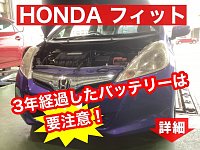 HONDA フィット バッテリー交換作業のご紹介です。 今回のフィットのバッテリーは6年半使われたのちにバッテリー交換時期を迎えました。 それではバックアップ電源を繋いで交換作業に入ります。 いきなり飛びますが古いバッテリーを外したらあとは、バッテリーの載っているお皿をキレイにします。 ...