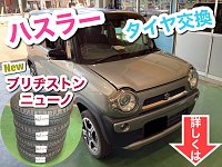ハスラーのタイヤ交換を 行わせていただきました。 タイヤ点検でご来店いただき点検してみると 劣化によるタイヤのヒビ割れが発生していました。 製造から9年経過しており、高速道路の使用予定も あるとのことで安心・安全のため交換を おすすめさせていただきました。 交換するタイヤは、今年登場...