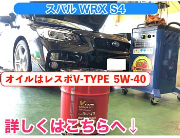 皆さんこんにちは 【スバル WRX S4】のオイル交換の紹介です。 オイルはレスポV-TYPE 5W-40 詳しくはこちら→ 「レスポ オイルラインナップ」 当店ではV-TYPEのほかに ・S-TYPE 10W-40 ・PRO-TYPE 5W-30 も取り扱っております! オイルフィルターも同時に交換しました。 オイル量を適正に注入して 作...