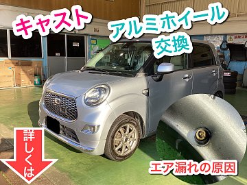 キャストアルミホイール交換を 行わせていただきました。 定期的に空気圧点検へお越しいただいている お客様のキャスト。今回は一輪だけ空気圧が 少なかったためパンク点検をさせていただくと チューブレスバルブの付け根からエアが 漏れていました。 チューブレスバルブが原因かバラしてみると ア...