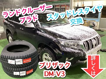 ランドクルーザープラドのタイヤ交換を 行わせていただきました。 スタッドレスタイヤの効きが不安で ご来店いただきました。タイヤを点検してみると、 スタッドレスタイヤとしての使用限界 プラットホームまでは、まだ溝がありますが 2018年製造品で経年劣化により ゴムが硬化してしまうのでスタッ...