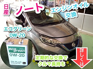 日産ノートのエンジンオイル交換を 行わせていただきました。 エンジンオイルの交換も タイヤ館六日町へお任せ! オイルチェンジャーでスピーディに交換! 定期交換が必要なエンジンオイル コスパの良いエンジンオイルございます! お求めやすいエコグリーン0W-20 最後に油量チェックして完了です!...