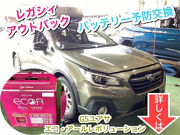 レガシィアウトバックのバッテリー交換を 行わせていただきました。 前回、エンジンオイル交換を行ったときに バッテリー点検をさせていただいたところ、 製造から4年が経過していたことから そろっと交換時期ですね、とご案内 しておりました。 今回はお客様からバッテリートラブルを 起こす前にと...