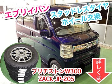エブリイバンのスタッドレスタイヤ交換を 行わせていただきました。 スタッドレスタイヤは、ブリヂストン バン・小型トラック用スタッドレスW300 ホイールは、エブリイバン対応サイズのある ジャパン三陽 ザックJP-205 夏タイヤも純正スチールホイールから ジャパン三陽 JPスタイルジェファ アルミ...