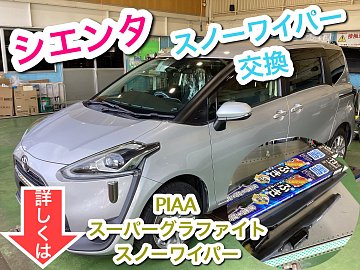 シエンタのワイパーブレード交換を 行わせていただきました。 スノーワイパーをお求めにご来店いただきました。 当店でもスノーワイパーを取り扱っておりますが こちらのシエンタ(年式H27~H30)は、 トップロックワイパーアーム形状で 対応品の在庫がありませんでした。 対応品のワイパーブレードか...