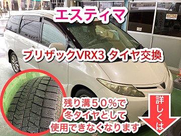 エスティマのスタッドレスタイヤ交換を 行わせていただきました。 冬タイヤの点検、相談にご来店いただき 点検してみると製造年数が2018年、 残り溝はプラットホームが露出している 状態でした。 スタッドレスタイヤは、残り溝が50%に 減りプラットホームが露出すると冬タイヤ として使用できな...