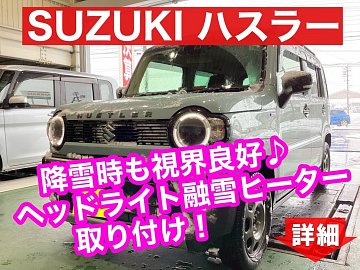 SUZUKI ハスラー ヘッドライト融雪ヒーター取り付け作業のご紹介です。 今回、取り付ける商品はコチラ↓ PIAA ヘッドライト&テールライト融雪ヒーター O型 『商品についての詳しい情報はコチラから(メーカーホームページ)』 今回はヘッドライト点灯時にヒーターが作動する様にポジションランプの配線...