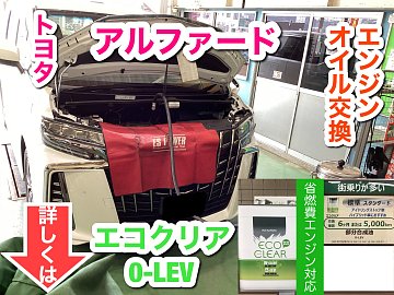 トヨタ アルファードのエンジンオイル交換を 行わせていただきました。 エンジンオイルの交換は、オイルチェンジャーを 使用して古いオイルを抜き取ります。 交換するオイルは、省燃費エンジン対応 エコクリア 0-LEV 最後にオイルゲージで油量をチェックして 作業完了です。 エンジンオイル交換もタ...