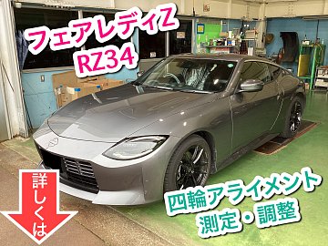 フェアレディZの四輪アライメント測定を 行わせていただきました。 RZ34型のフェアレディZが 入庫してまいりました。 走行距離は5千キロですが、アライメントの 測定にご来店いただきました。 測定してみたところ、微妙に基準値外の 数値だったり左右差がある状態。 アルミホイールが交換されていま...