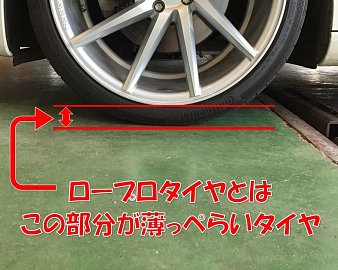今回はロープロタイヤ(偏平率の低いタイヤ)の空気圧が下がってしまった場合にどのくらい気づきにくいかってネタです。 ロープロタイヤとは簡単に言ったら下の画像の部分(タイヤの厚み)が薄いタイヤです。 さてここから正常な空気圧と空気が減ってきた状態のタイヤの比較画像を段階的に貼ってい...