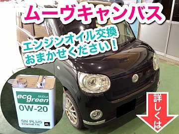 ムーヴキャンバスのエンジンオイル交換を 行わせていただきました。 エンジンオイルの交換は、 オイルチェンジャーで古いオイルを 抜き取ります。 交換するオイルは、新車充填時の オイルと合致した品質でありながら お求めやすい「エコグリーン 0W-20」 最後にオイルゲージで油量を チェックして作...