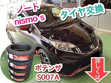 ノートnismo sのタイヤ交換を 行わせていただきました。 タイヤ交換をご検討中に ご来店いただきました。 タイヤの残溝は大丈夫でしたが、 2014年製造でタイヤには細かいひび割れ、 経年劣化によりゴムが硬貨しており 交換をおすすめさせていただきました。 標準装着のポテンザS007から ブリヂスト...