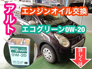 スズキ アルトのエンジンオイル交換を 行わせていただきました。 古いオイルはオイルチェンジャーで スピーディに抜き取ります。 交換するオイルは新車充填時のオイルと 合致した品質でありながら、 数量限定でお求めやすい エコグリーン0W-20 最後にオイルゲージで 油量チェックして完了です。 エ...