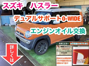 スズキ ハスラーのエンジンオイル交換を 行わせていただきました。 エンジンオイルの交換は、 オイルチェンジャーで古いオイルを 抜き取ります。 交換するオイルは、走行距離の伸びた 車におすすめ!トラブルの予防・解消に 高機能エンジンオイル デュアルサポート 0-WIDE 最後にオイルゲージで油量...