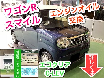 ワゴンRスマイルのエンジンオイル交換を 行わせていただきました。 定期的な交換が必要なエンジンオイルの 交換もタイヤ館六日町にお任せください! 交換するオイルは、0-LEV粘度により 純正推奨粘度※にマルチ対応。 (※0W-8,0W-12,0W-16,0W-20) HV/ISS車両にも最適設計。 エコクリア0-LEV オイルゲ...
