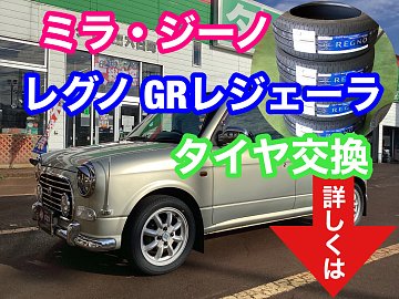 ミラ・ジーノのタイヤ交換を 行わせていただきました。 経年劣化によるタイヤ交換を ご検討頂いておりました。 今回、レグノの軽自動車専用GRレジェーラ をお選びいただきタイヤ交換を 行わせていただきました。 静かで快適な車内空間をお求めの方へ 軽自動車専用レグノGRレジェーラ オススメです♪ ...