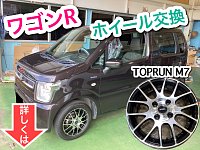 ワゴンRのホイール交換を 行わせていただきました。 夏タイヤのホイールを変えたいと ご相談いただき、ブリヂストン トップランM7 B/Nのアルミホイールへ 交換させていただきました。 純正のスチールホイールを取り外します。 ホイールの取り付けに貫通ナットが 使われていたので、ホイールカバーや...