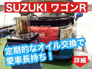 SUZUKI ワゴンR エンジンオイル交換のご紹介です。 今回のワゴンRは、オイルゲージ部からホースを入れて古いオイル抜き取る【上抜き方式】で交換させていただきました。 オイル抜き取り中に安全点検も行います! オイルの抜き取りが終わったら新しいオイルを入れるだけ(^_^)b 使用したオイルは部分...