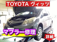 TOYOTA ヴィッツ マフラー修理をご紹介致します。 先日、WEB予約の方に下回りを擦ったので点検して欲しいとのご依頼がありました。 ご来店頂いた際に下回りを確認すると中間マフラーのサイレンサー部分にダメージが確認されました↓ 走行中に異音がするとの事で試乗してみると、段差で下からコンコン...