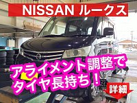 NISSAN ルークス アライメント調整作業のご紹介です。 今回のルークスはスタッドレスタイヤを新品交換する際に、前輪に内ベリが見られましたのでアライメント調整を行わせて頂きました。 調整前データです↓ 前輪が大きく外股方向にズレていました・・・ ルークスは前輪のみでトー角の調整を行えるので...
