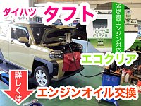 ダイハツ タフトのエンジンオイル交換を 行わせていただきました。 エンジンオイル交換は、オイルチェンジャーを 使って古いオイルを抜き取ります。 交換するオイルは、 省燃費エンジン対応のエコクリア0-LEV。 最後に油量チェックして完了です。 エンジンオイル交換もタイヤ館六日町へ おまかせく...