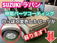 ラパンに樹脂パーツコーティングを 行わせていただきました。 5年ほど乗られているラパン。 洗車をしていて気になっていたという 樹脂パーツの変色。 塗装がされていない樹脂パーツは劣化などで 白っぽく変色してしまいます。 バンパー・サイド・フェンダーと 樹脂パーツが使われている部分は 意外...