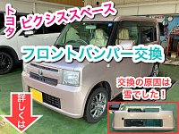 ピクシススペースのフロントバンパー交換を 行わせていただきました。 バンパーが壊れて修理をお願いしたいと、 ご連絡いただきました。 フロントバンパーの破損で、ラジエターも 破損しているとオーバーヒートの恐れが あるので車から水が漏れていないこと、 水温計に異常がないことを確認いただき...