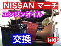 NISSAN マーチ エンジンオイル交換作業のご紹介です。 今回のマークは、オイルゲージ部からホースを入れて古いオイル抜き取る【上抜き方式】で交換させていただきました。 使用したオイルは100%合成油の【ECOMAX0W-20】です。 新しいオイルを入れたあとアイドリングをしてオイル漏れ・油量チェック...